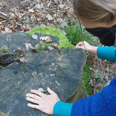 "De manière générale, je sais que la forêt est un endroit qui me fait du bien. En participant à l'atelier, j'ai pu savourer ce moment en forêt "pour moi toute seule" - sans ma petite famille ! Et puis, ce qui m'a plu, c'est que dans l'intimité du petit groupe et en présence de notre guide/coach, on est tout seul mais pas tout à fait. C'est cela, je crois, qui m'a permis de lâcher prise, de me concentrer sur moi et la forêt, de m'aventurer tranquillement au fil des exercices proposés - en toute confiance et sécurité. Et ça, toute seule, je ne l'aurais sans doute pas vécu. C'était donc un joli moment pour sentir simplement ce qui se passe à l'intérieur de moi/nous et autour de moi/nous, et pour réaliser un peu mieux ce que l'on est occupé à vivre et ce à quoi l'on aspire concrètement pour les jours à venir."