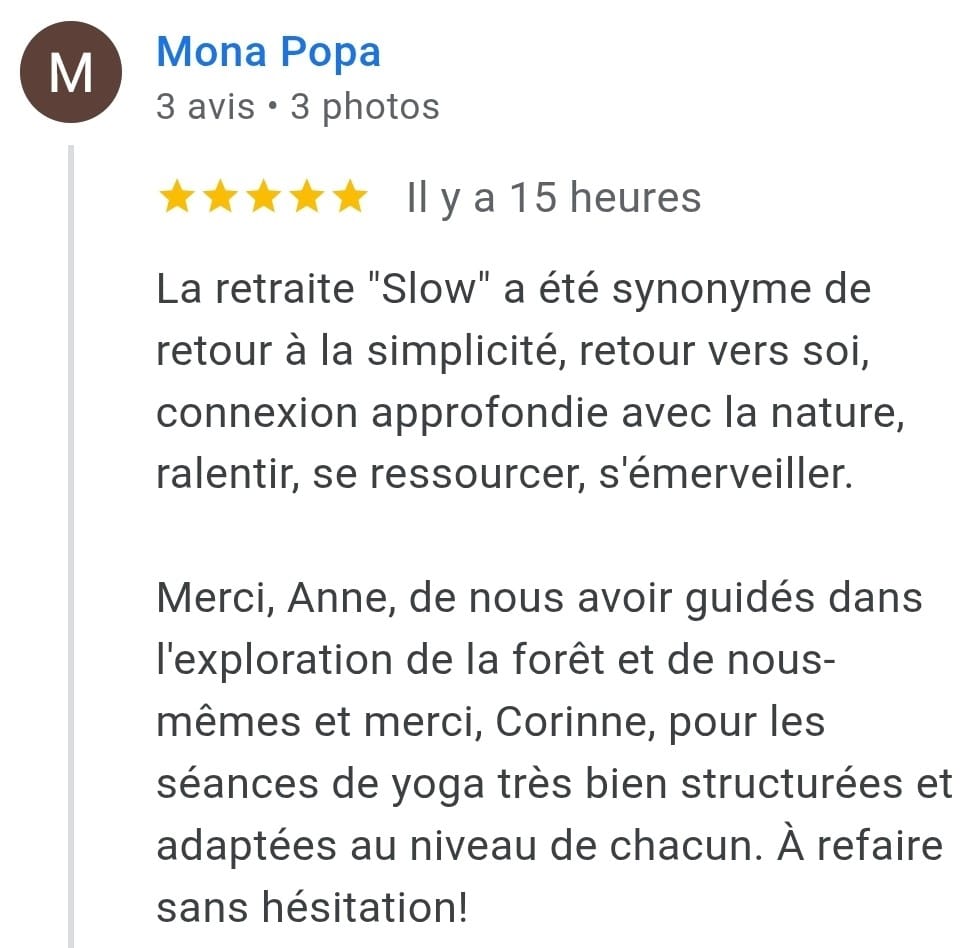 Cette mesure peut vous sembler sévère, mais pour préparer la retraite, nous engageons de gros frais en avance (réservation des lieux, y compris la salle de pratique du yoga et les chambres), nous sommes donc obligées de nous protéger pour la pérennité de ces Retraites Slow.