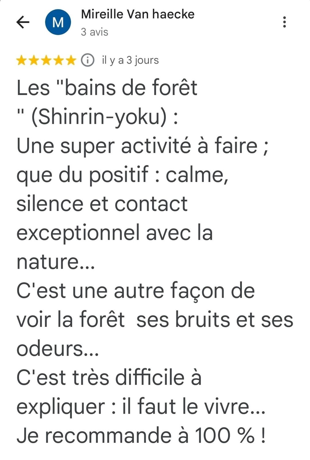 Un bain de forêt consiste en une immersion en forêt, pendant laquelle différentes invitations sont proposées, entrecoupées de marches lentes en conscience et en silence, afin d'amener les personnes à se relaxer et à retrouver un bien-être physique et psychologique.